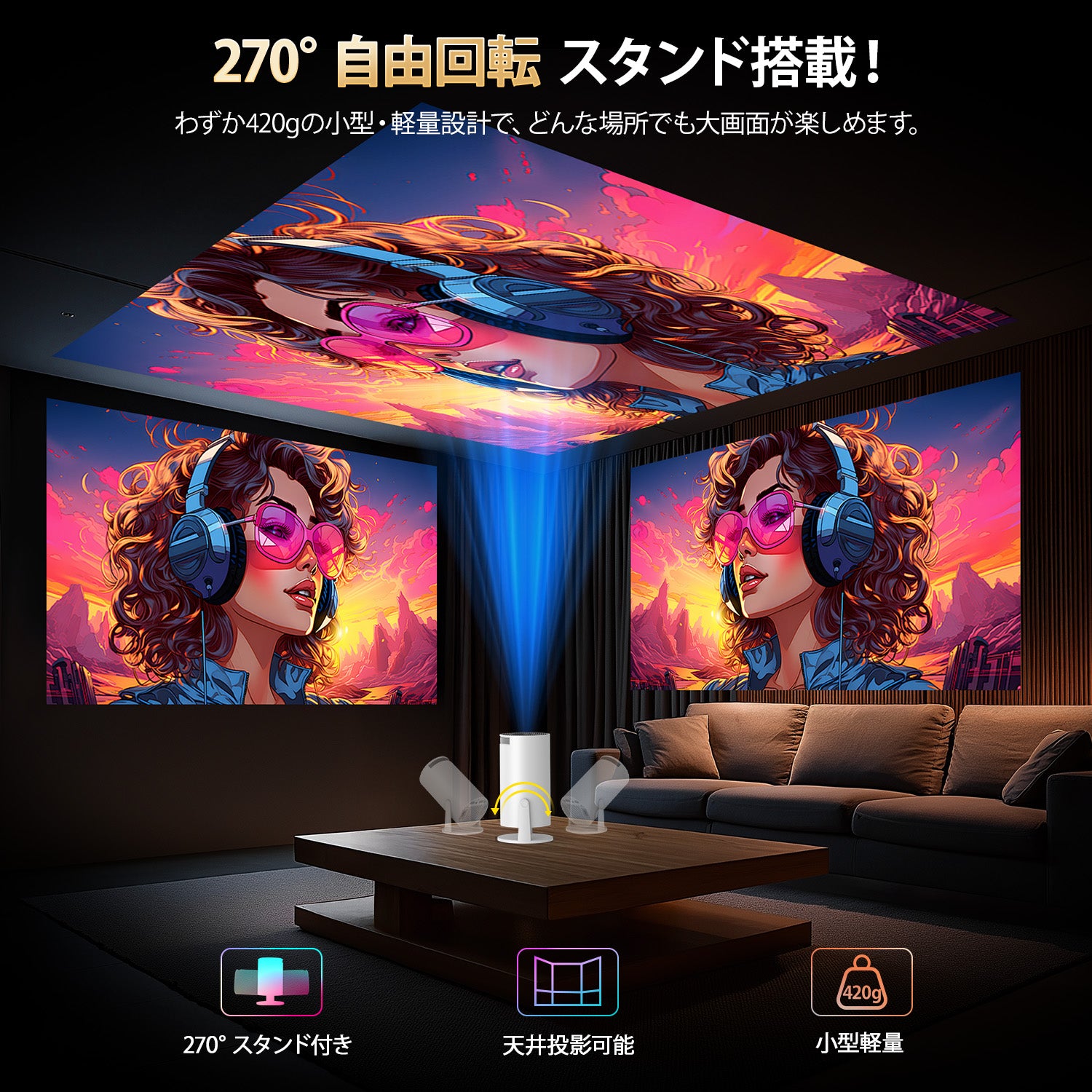 - ✅【短距離投影&300インチ大画面&高音質HiFiスピーカー&50%ズーム機能】 10WのHiFiスピーカーを内蔵しており、外付けのスピーカーと接続必要ないです。迫力のある低音と割れない高音に優れた表現力を持ち、場所を選ばずいつでもステレオで臨場感あふれる視聴体験を実現できます。コンパクトですが33"から300"までの画面を投影でき、アスペクト比4:3/16:9のディスプレイをサポートしています。0.5M超短焦点投射で0.5Mで投影サイズを30"まで実現小さい部屋の方々も十分に使えます。画面の表示サイズを固定距離で100~50%を調整可能頻繁にプロジェクターの投影距離の調整も必要なく便利です。床に眠りながら、プロジェクターを動かなくてもリモコンで画面のサイズを調整できます。