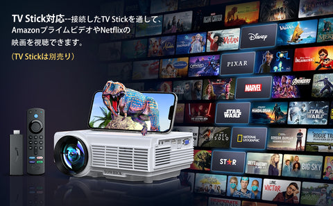 【5GWIFI接続&有線接続】最新ネイティブ1080PプロジェクターはWi-Fi機能があり、交換ケーブルやAnycastなどのミラーリング交換設備不要で、wifi経由でAirPlay、MiraCast、DLNAに対応されたスマホやパソコンにすばやく接続できます。そして、 一般的な2.5Ghz帯のWiFi搭載したプロジェクターより、超高速5GWiFiのプロジェクターは通信速度によってオンラインゲームやビデオに遅延のないストリーミング体験を提供します。しかも、スマホのUSBケーブルでの有線接続も可能で家にWi-Fi環境が無くても接続はできます。操作が簡単で、スマホを使ってサクサク繋がれます。