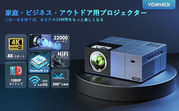 【2024最新家庭用・ビジネス両用&100"スクリーン付き&昼間も見れる】YOWHICK プロジェクター 小型 5GWiFi瞬時接続 22000LM高輝度 4K対応 1080PフルHD Bluetooth5.3搭載 台形補正 50%ズーム機能 家庭用300"大画面 天井吊り可 ホームプロジェクター スマホ/パソコン/タブレット/PS4/PS5ゲーム機/DVD接続可 3年保証 誕生日プレゼント
