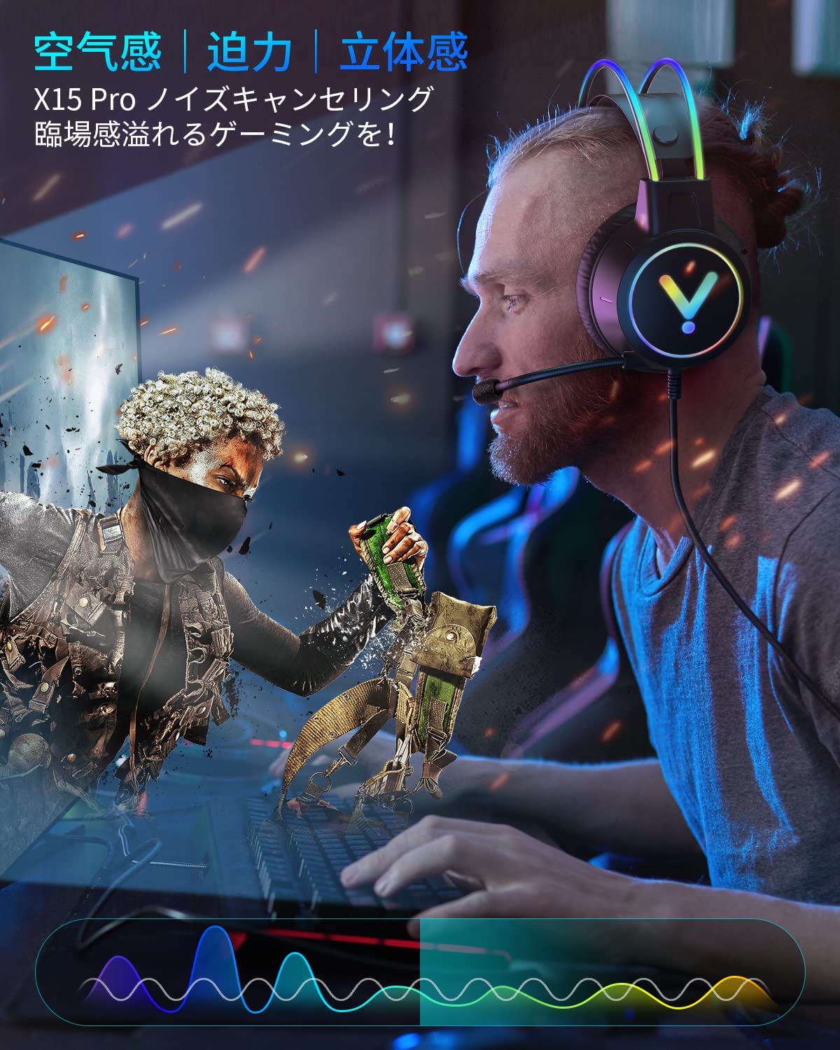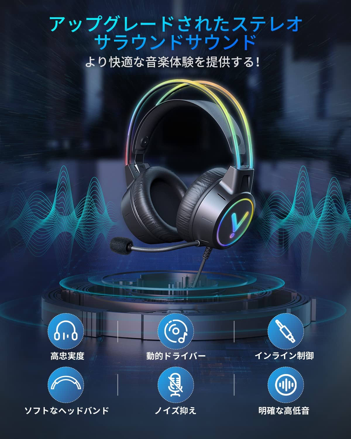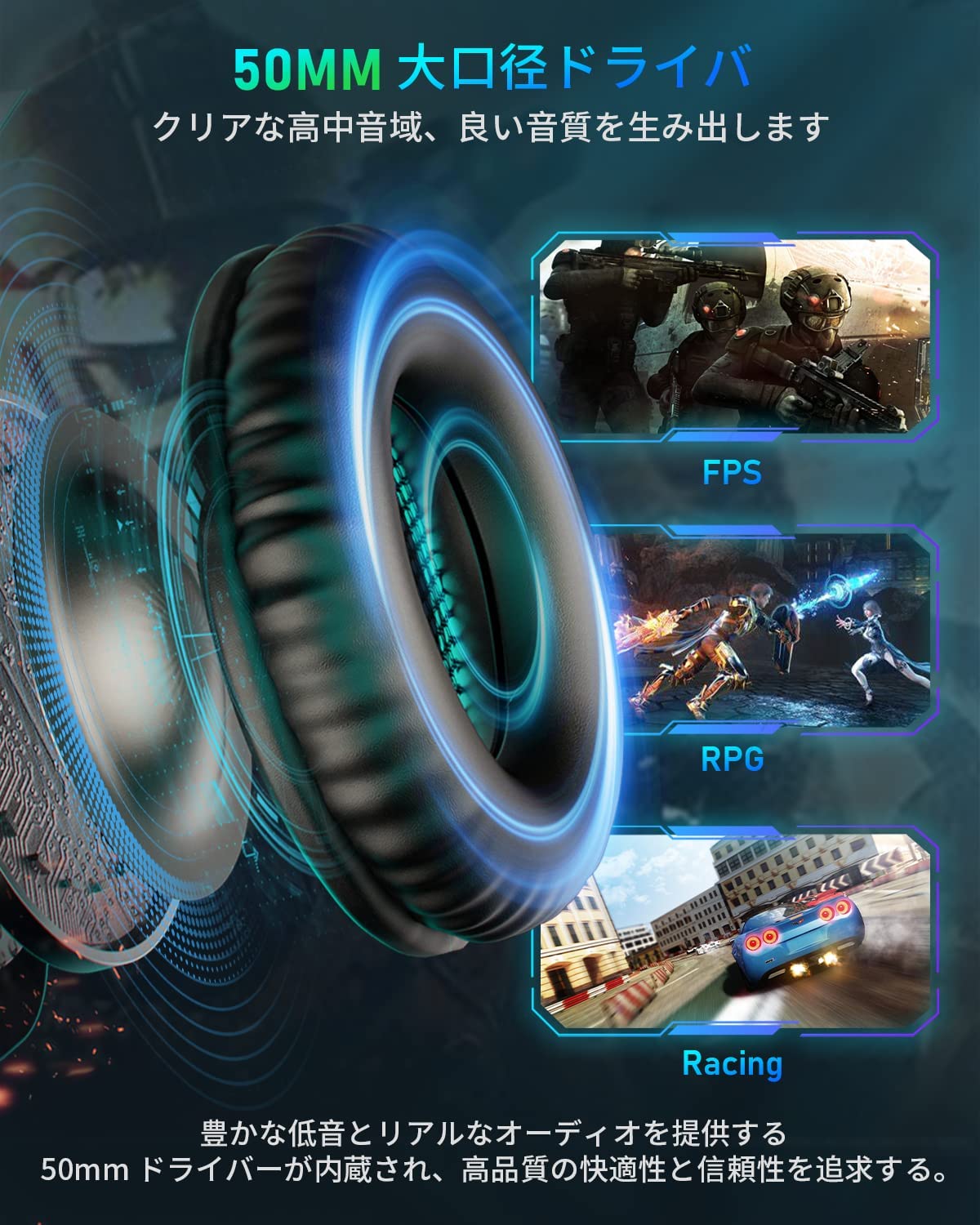 - 🌈【サラウンドサウンド・多彩なRGBライト】専門的なゲーミングヘッドセットメー カーにより作られた本製品の品質をぜひお楽しみ下さい。高精度 50mm強磁力ネオジウムドライバーを採用する事により、クリアな低域音質から高域音質、また、震撼な衝撃音を高精度で再現可能にしま した。モンスターや敵の足音まではっきりと聞き取ることができます。映画、音楽、ボイスチャット、ラジオ、録音などのためのベストな機材です。また、連続的に変化する虹のようなRGBライトは、ゲームの雰囲気を盛り上げます。PCでのUSBジャックはご挿入したら、すぐにご体験できます。