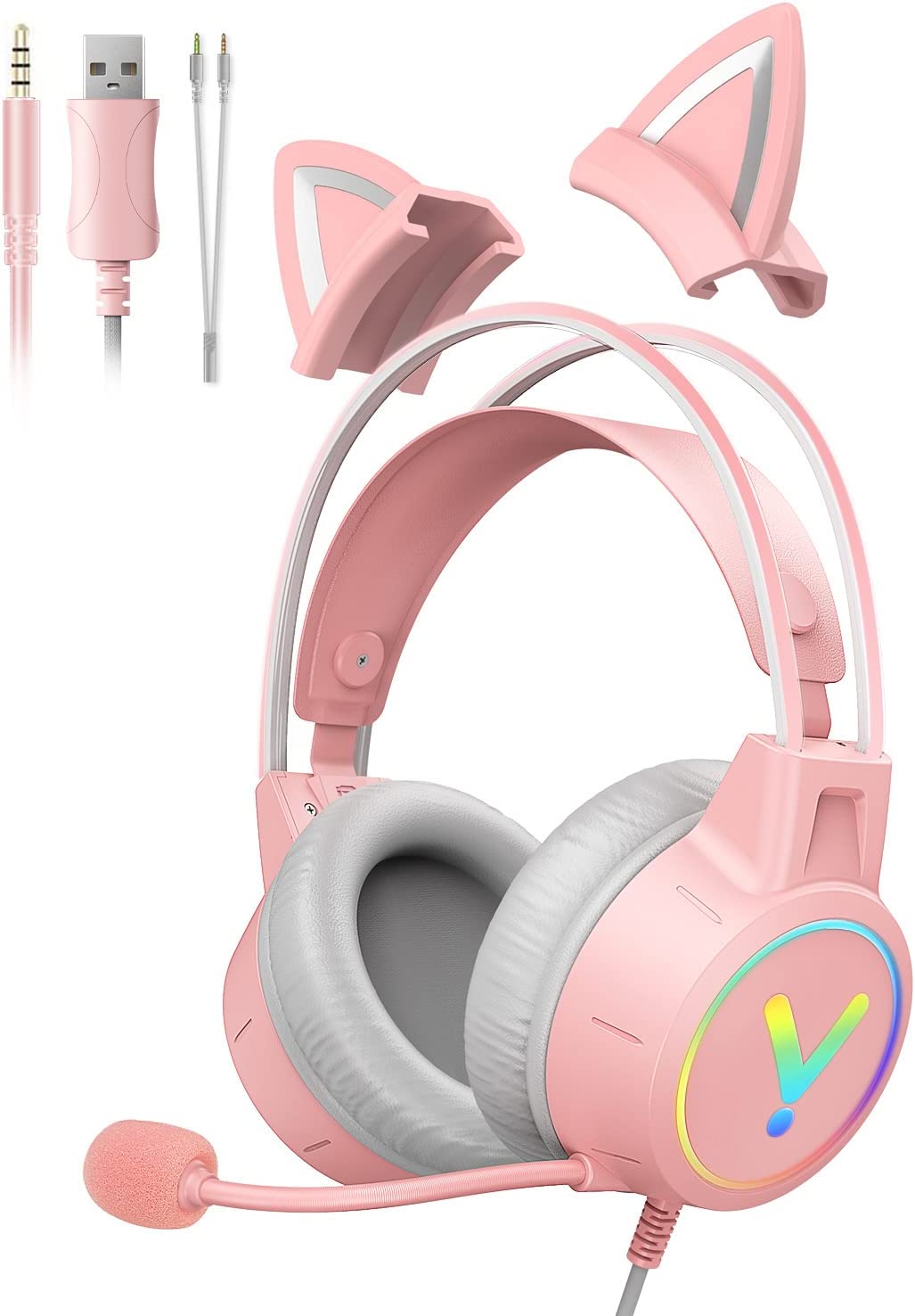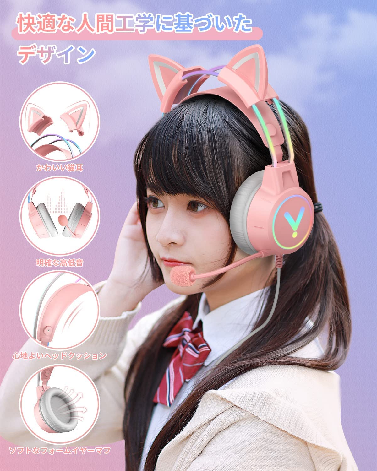 【RGBライト・人気なデザイン】ゲーミングヘッドセット 猫耳ヘッドホン ps4/5 ヘッドセット ゲーミングヘッドホン全効能 密閉型 ゲーム用ヘッドセット