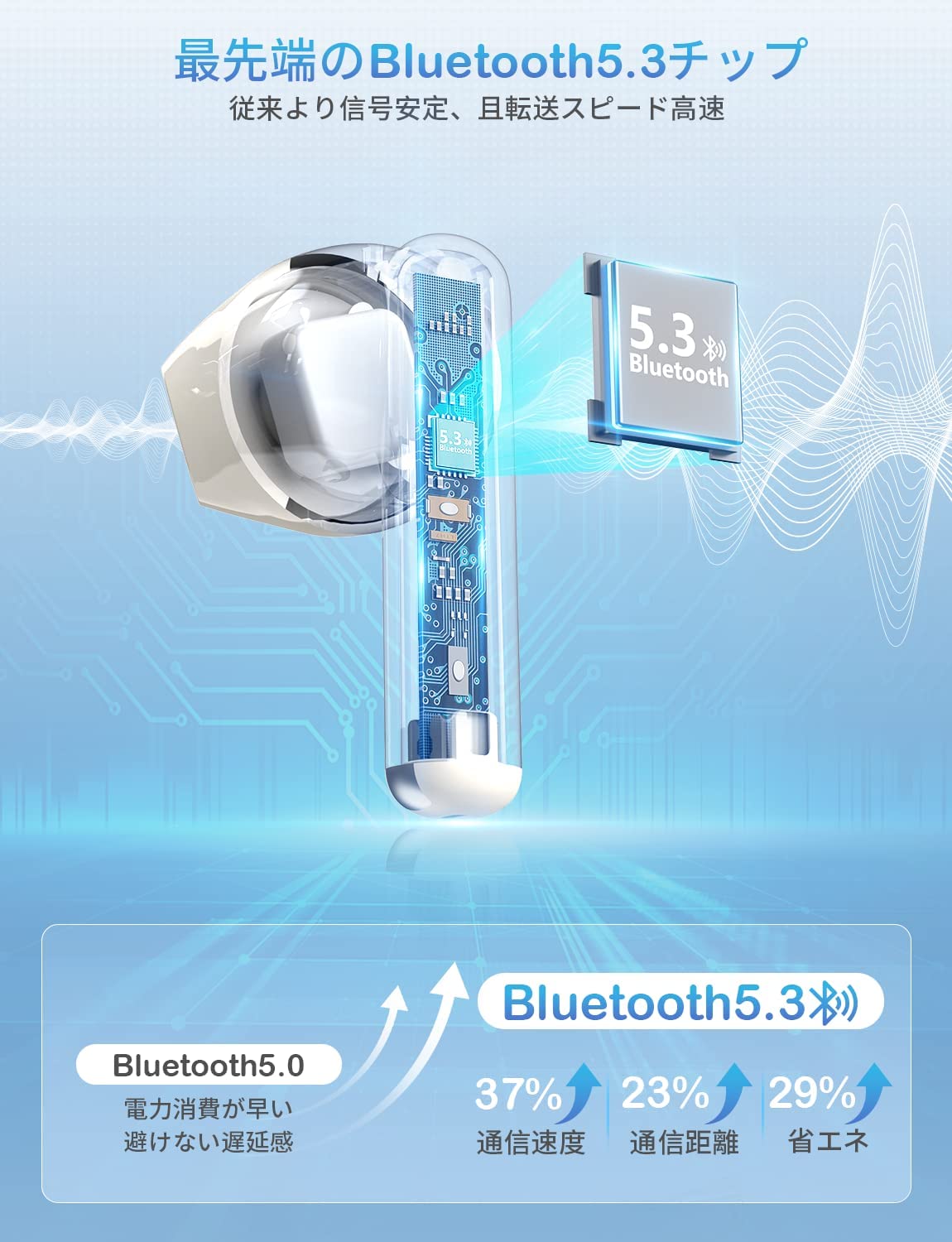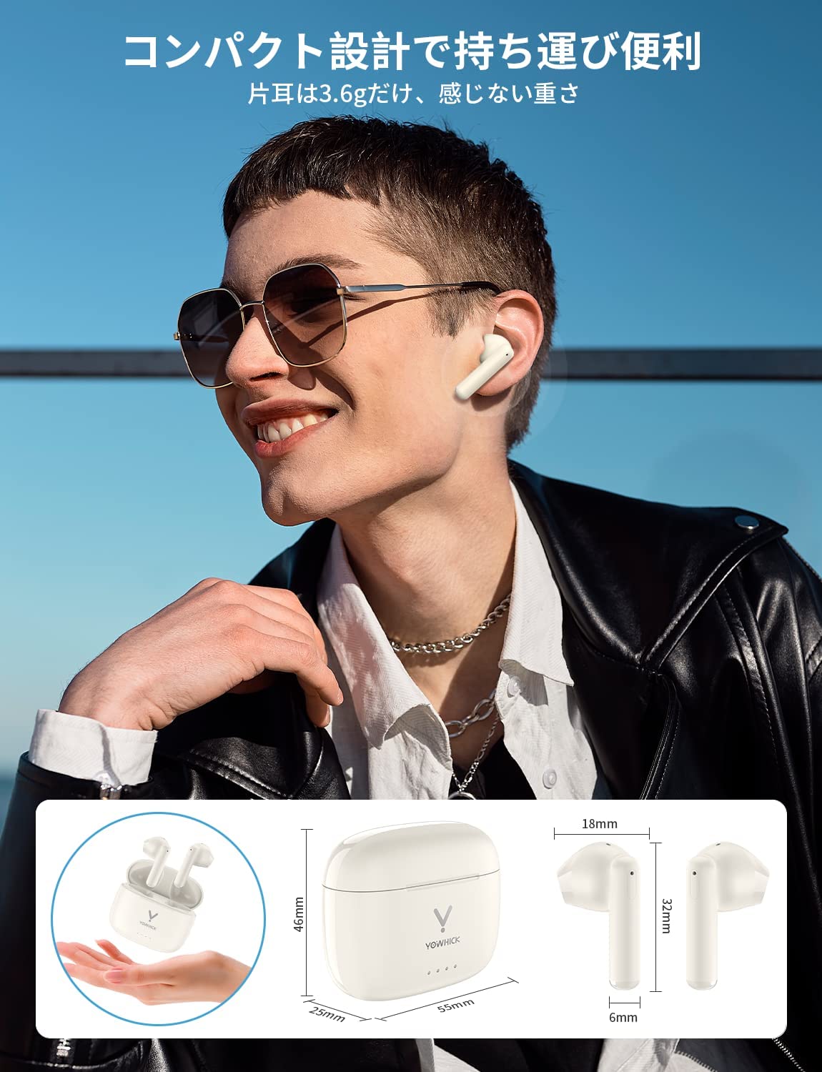 YOWHICK 完全ワイヤレスイヤホン Bluetooth 5.3+EDR ハンズフリー通話 CVC8.0 ノイズキャンセリング ぶるーとーす ヘッドフォン